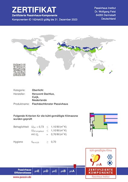 Gecertificeerd Passiefhuis Component 1624sk03 doorPassivhaus Institut Darmstad DE