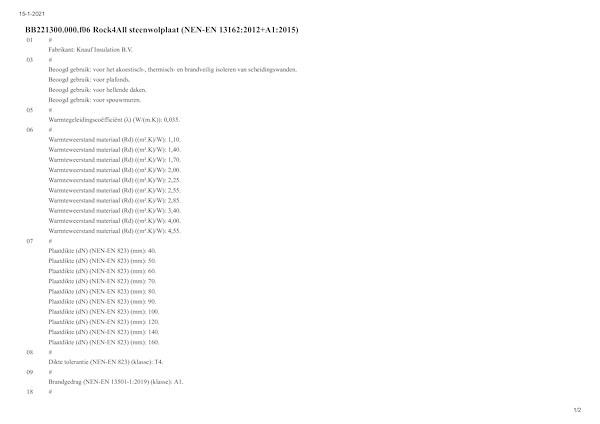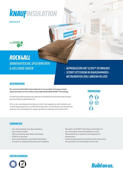 De naam Rock4All zegt het al. Met Rock4All steenwol rock je echt bijna elke isolatieklus. Of het nu gaat om de isolatie van een schuin dak of het isoleren van een verdiepingsvloer of scheidingswand, met de universeel toepasbare Rock4All kun je de isolatieklus perfect uitvoeren. Omdat deze steenwol isolatie waterafstotend is, kun je Rock4All ook uitstekend als spouwmuurisolatie gebruiken. Dus heb je een keer een pak over? Geen nood, want elk restant isolatie gebruik je heel eenvoudig bij een nieuwe isolatieklus.