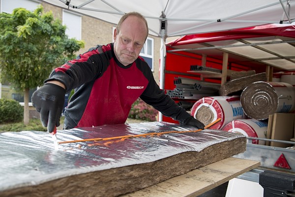 Glaswoldeken voor isolatie van prefab houtbouw