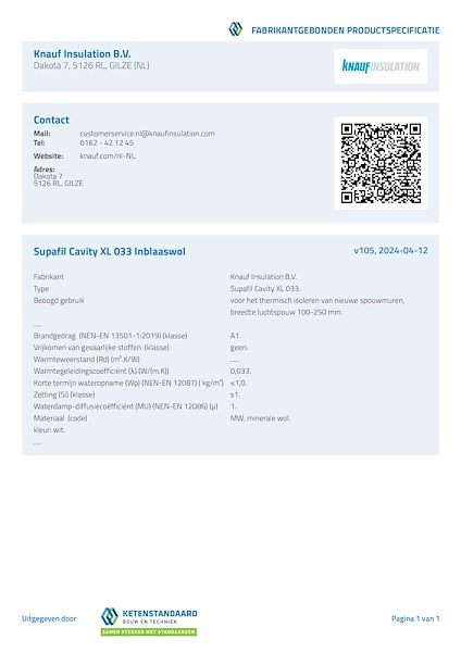 De unieke vezelstructuur van SUPAFIL Cavity XL isolatie wol geeft een blijvende optimale verdeling in de spouw. Het is waterafstotend door de behandeling van de vezels met siliconen. Er wordt geen bindmiddel toegevoegd.