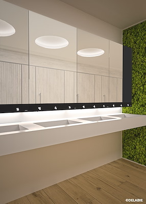 De DELABIE groep, expert in sanitaire voorzieningen voor publieke ruimten, presenteert zijn 4 in 1 spiegelkast. Elegantie, eenvoudige installatie, optimale hygiëne...