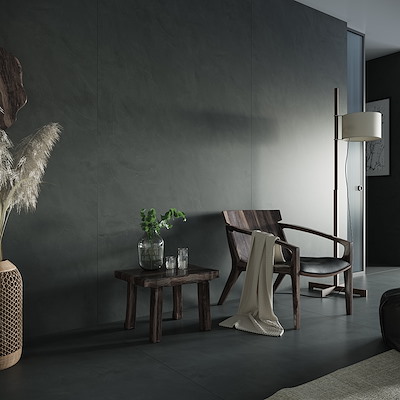 Micron is elegant en ingetogen. De markeringen maken het een levend, ademend materiaal in zijn troffelstructuur. Dit diepe, donkergrijze straalt een geruststellend gevoel van rust uit, alsof wijsheid en sereniteit metaforisch verwelkomend zouden kunnen zijn.