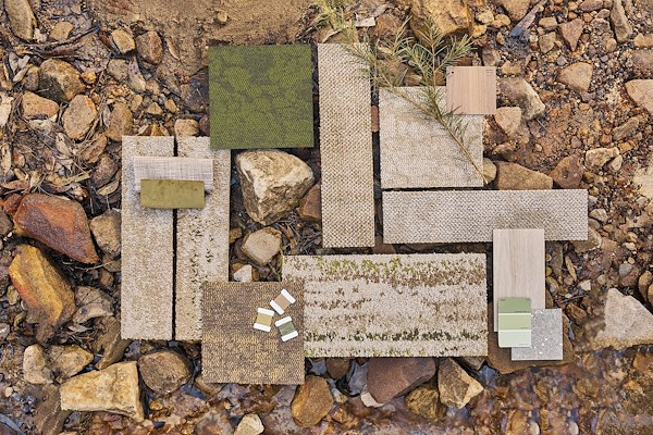 Spinifex is geïnspireerd op het geel, goud en rood van de plant, eenmaal ontdaan van zijn buitenste laag. Diepgroene accenten zijn verspreid, als verwijzing naar de levendige struiken die het dorre land bedekken.