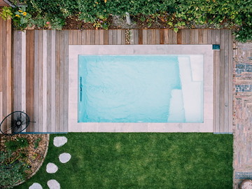 Composiet Monoblock zwembad met een compacte afmetingen met unieke designtrap