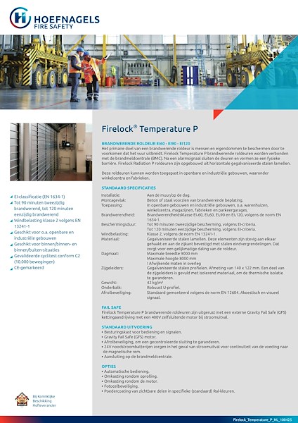 Firelock Temperature-P, brandwerende roldeur