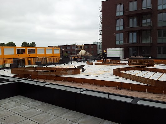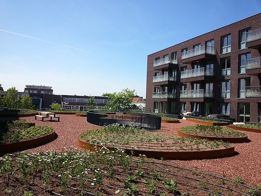 Combinatie van rijverharding en begroening op parkeergarages, met 1 drainage-element!