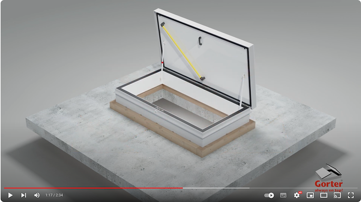 Een Gorter RHT-dakluik met een gesloten deksel is geschikt voor installatie in platte daken met een maximale hellingshoek van 30°. Een glazen dakluik, type RHTG, kan worden toegepast in daken met een maximale hellingshoek van 5°. Alle Gorter dakluiken worden volledig geassembleerd geleverd “ready to install”. Bekijk het installatieproces in de onderstaande video.