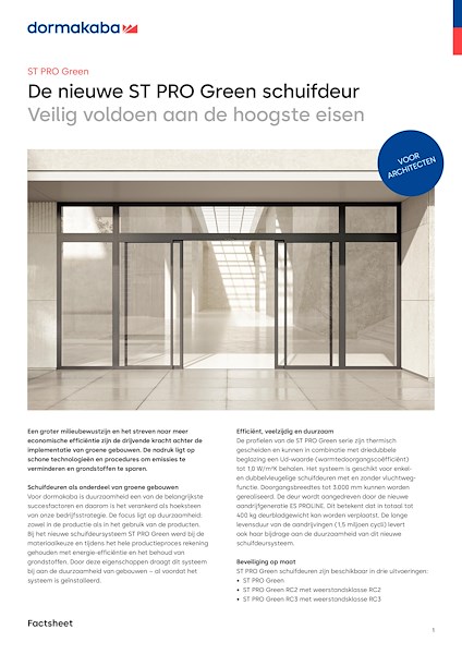 Duurzaamheid geldt binnen dormakaba niet alleen als een van de belangrijkste succesfactoren, het begrip is ook stevig verankerd in de bedrijfsstrategie. Met de introductie van het schuifdeursysteem ST PRO Green en de nieuwe schuifdeuraandrijving ES PROLINE wordt dat wederom bevestigd.