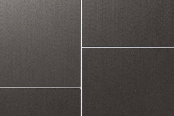 Gevelplaat in vezelcement met gekleurde kern en geschuurd, mat oppervlak.