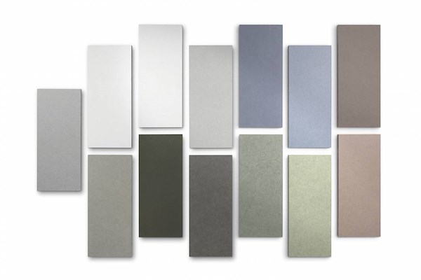 Gevelplaat in vezelcement met gekleurde kern en geschuurd, mat oppervlak.