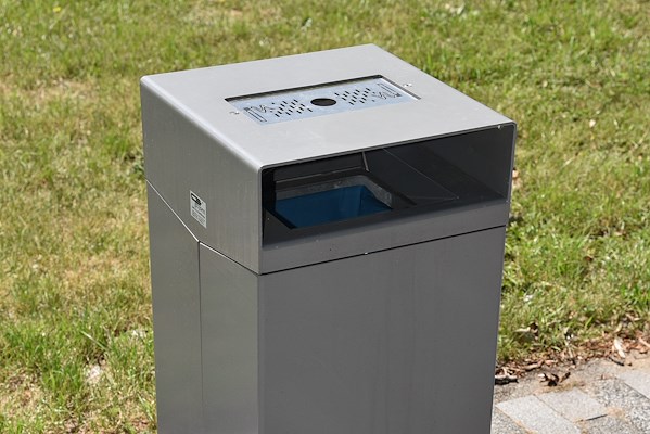 Quadrat afvalbak met geïntergreerde asbak