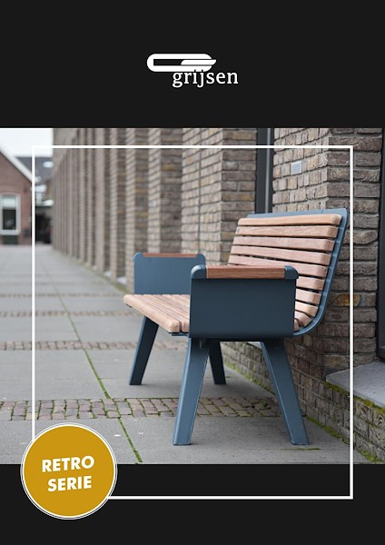 De Retro-serie kenmerkt zich door een stijl uit het verleden, maar dan met een moderne twist. De lijn van straatmeubilair is ontworpen voor een project in het Duitse dorp Alpen. Bij dit project werd de openbare ruimte omgetoverd tot een gezamenlijke huiskamer. De Retro bank vormt de basis van deze lijn: stijlvol en chique. Het meubilair is gemaakt van gepoedercoat staal en is afgewerkt met een zitvlak en rugleuning van hardhout.