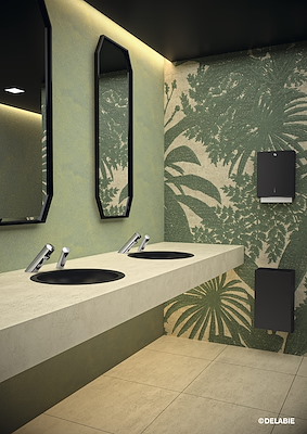 Openbare sanitaire voorzieningen worden steeds belangrijker en zijn het toonbeeld van hygiëne en design voor de hele instelling. Om aan deze nieuwe behoefte te voldoen biedt DELABIE, expert in sanitaire voorzieningen voor publieke ruimten, een harmonieuze combinatie van TEMPOMATIC 4 elektronische kranen en zeepverdelers op blad.