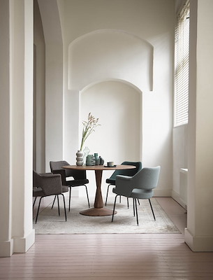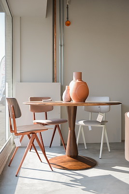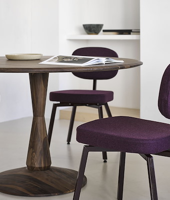 Met de Volante zit je aan een ronde designtafel. Een tafel die de kenmerkend Scandinavische stijl van eenvoud en kwaliteit ademt. Die tegelijk sierlijk en robuust oogt. Het tafelblad is van massief hout en heeft een aflopende rand. De tafelpoot heeft conische vormen; de poot neemt geleidelijk in dikte toe en af. Een bijzondere design kolomtafel.