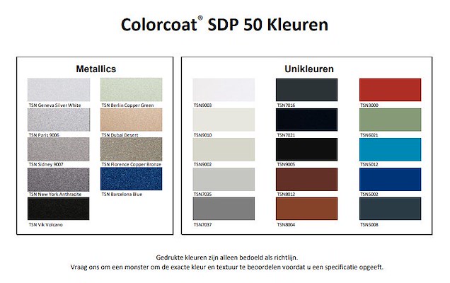 Colorcoat SDP 50 is standaard verkrijgbaar in