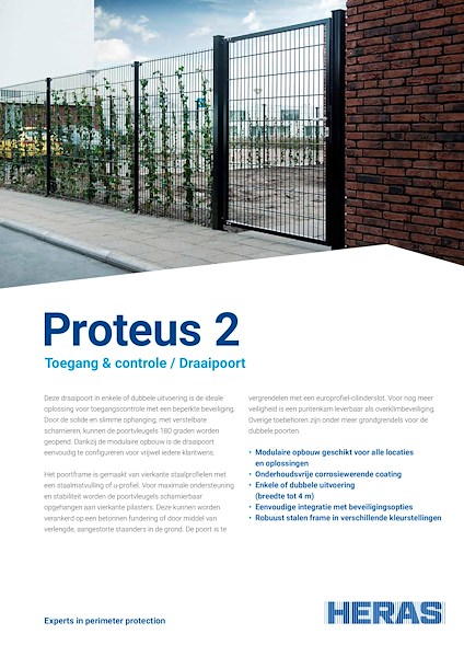 De Euro 2 is een veelzijdige draaipoort en zeer geschikt om de toegang tot uw terrein veilig af te sluiten. De 180° opendraaiende poort met een maximale doorgang van 10 meter, biedt alle ruimte aan voertuigen en voetgangers. Met het moeilijk te forceren sluitwerk staat de Euro 2 voor optimale beveiliging. De ruime keuze aan accessoires, invullingen, mogelijke breedtes en hoogtes maken dat de Euro 2 draaipoort altijd aansluit bij uw specifieke wensen.