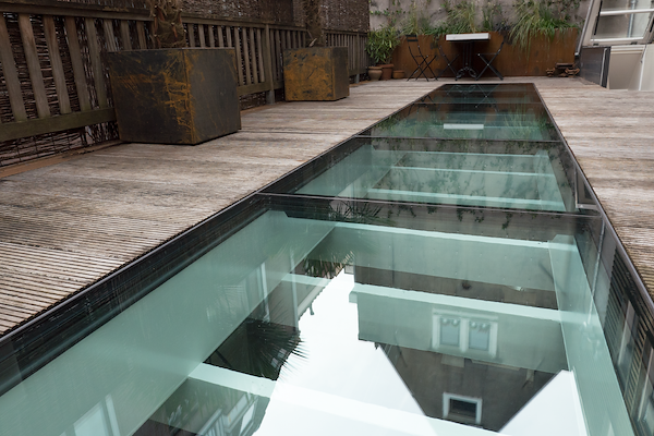 Glazen dakluik, toegang tot dakterras en daktuin
