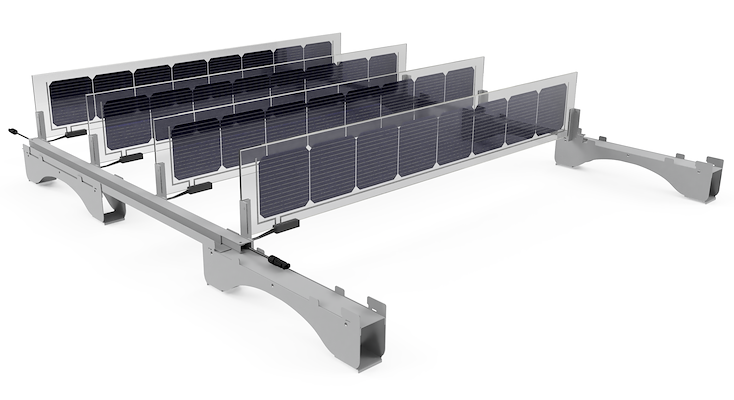 combineert (lichtgewicht) Sedumdaken met dubbelzijdige, verticaal gemonteerde zonnepanelen. Het lichtgewicht Solarsysteem van