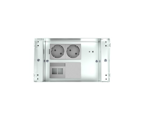 Door de geïntegreerde foamstrip blijft de box stofdicht en daarnaast ook nagenoeg luchtdicht. De handige afdek-/montageplaat doet de rest. Deze plaat is zo ontwikkeld dat deze op het houten vloeroppervlak leunt en hierdoor zijdelinks met spaanplaatschroeven vastgezet kan worden. Hiernaast zorgt de plaat er direct voor dat de contactpunten beschermd en schoon blijven.