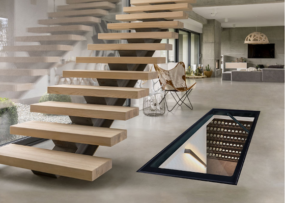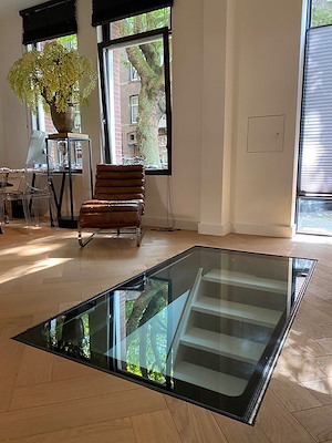 De daglichtopbrengst in het souterrain of wijnkelder wordt met een glazen vloerluik vele malen groter. Ook toepassing tussen zolderverdieping en de onderliggende etage behoort ook tot de mogelijkheden. De transparante verbinding is ijzersterk, zowel in belastbaarheid als in esthetiek.