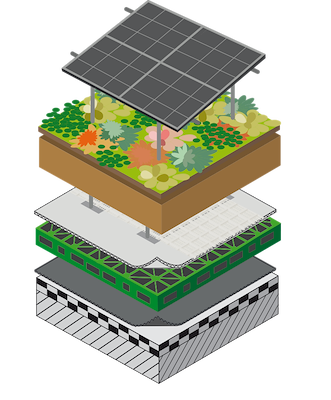 Zonnepanelen en vegetatie zijn een geweldige combinatie op het dak. Samen staan ze bekend als solar-groendaken. Nophadrain heeft hiervoor een systeem ontwikkelt dat ontworpen is om te voldoen aan de eisen van groendaken en om zonnepanelen veilig te installeren door de substraatlaag te gebruiken als ballast voor de zonnepanelen.