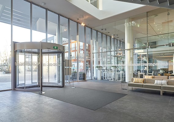 Natuurlijke en krachtige uitstraling bij een glazen systeemwand.