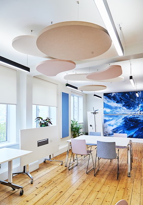 Eclipse Customised eilanden zijn snel en eenvoudig te installeren en kunnen direct aan het plafond worden bevestigd waar een traditioneel verlaagd plafond niet mogelijk of gewenst is. Het is een budgetvriendelijke manier om zowel karakter als akoestische harmonie te brengen in multifunctionele, moderne interieurs.