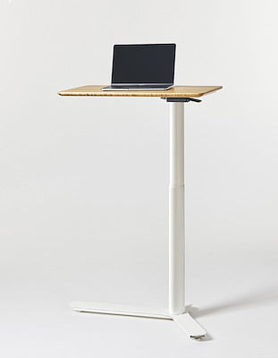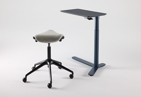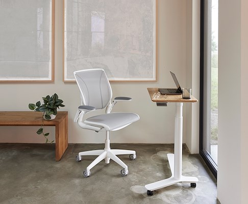 Float Mini paart de bekende eigenzinnige Humanscale kijk op ergonomie aan een huiselijke vormgeving om een eenvoudige en compacte zit/sta oplossing te creëren voor thuis én op kantoor.