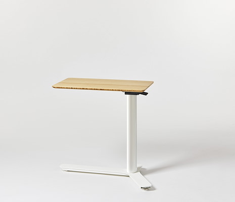 Float Mini kan van zwenkwieltjes worden voorzien voor extra mobiliteit en heeft een traploze hoogteverstelling (gaslift, dus niet electrisch) van 69 tot 115 cm. Het frame is gelakt in diverse kleuren en blad is leverbaar in Bamboe of met een Linoleum toplaag.