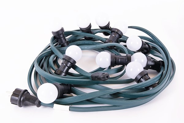 Leverbaar in 10 of 20 meter kabel met 10 of 20 witte of gekleurde lampjes.