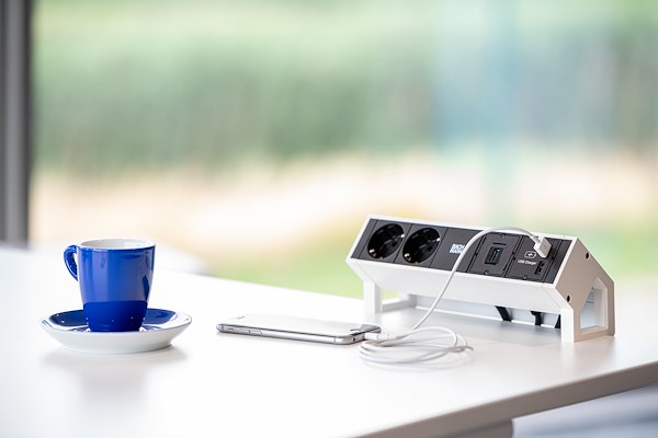 Dit inbouwstopcontact vindt u vaak terug op flexwerkplekken, dankzij de veelzijdigheid.