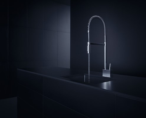 . Allen tot stand gekomen met de befaamde topdesigners waarnaar de serienamen doen verwijzen. De gemene deler van de 3 verschillende AXOR Semi Pro kranen is de grote gebogen kraanhals, de stoere vormgeving en uitrekbare kraanuitloop.