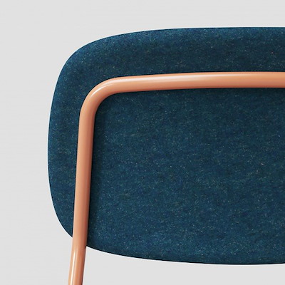 Deze principes worden niet alleen weerspiegeld in het uiterlijk, maar ook in de productiemethode. De zitting en rugleuning van de stoel worden geproduceerd uit gerecyclede plastic flessen, met behulp van een geavanceerde 3D-persingstechniek met PET-vilt.