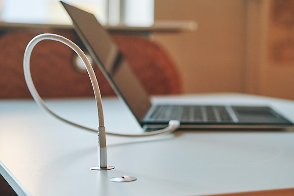 Kabels en snoeren zijn, letterlijk en figuurlijk, onlosmakelijk verbonden met werken op kantoor of vanuit huis. De vele kabels die nodig zijn voor online vergaderen zijn met OCHNO echter teruggebracht tot slechts één USB-C kabeltje. Dat kabeltje is aangesloten op een subtiel en elegant vormgegeven, cirkelvormig knopje in het tafelblad. Deze zogenoemde socket is tevens voorzien van een ‘show-me’ button en is verkrijgbaar in zwart en zilvergrijs/wit. Dankzij deze neutrale kleuren past de socket in iedere kantooromgeving.