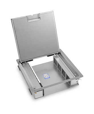 biedt gemak in installatie en gebruik. Met een diepte van 62 mm, halogeenvrije bedrading en kunststoffen - UL94-V0 - voldoet deze vloerdoos aan alle verwachtingen. Geopend krijgt iedere gebruiker toegang tot de gewenste aansluitingen: standaard wordt de vloerdoos stekerbaar geleverd met 4 RA wcd’s en een 8-voudig datapaneel voor de meeste data-aansluitingen.