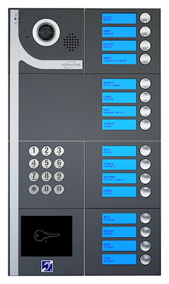De Dina intercom kan worden geconfigureerd voor 4 tot 24 namen, met een optioneel gecodeerd toetsenbord.