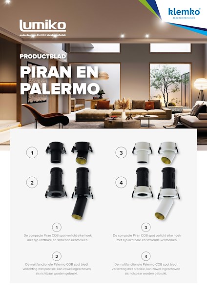 spot biedt nog meer flexibiliteit dankzij de langere kop, die ingeschoven, uitgeschoven en gekanteld kan worden. Hiermee kan de Palermo zowel als algemene verlichting dienen of ingezet worden voor accentverlichting, perfect om specifieke objecten in de spotlight te zetten. Net als de Piran, is de Palermo voorzien van een