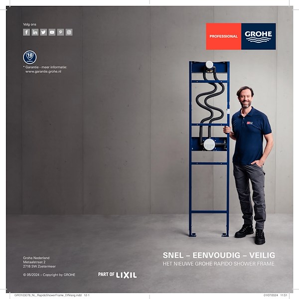 Bij GROHE staat veiligheid en betrouwbaarheid voorop. Het Rapido inbouw doucheframe is volledig getest op lekdichtheid en biedt hoogwaardige aansluitingen die zorgen voor een foutloze, veilige installatie. Alle gemengde waterleidingen zijn geïsoleerd en de afgedichte verbindingen zitten al op de juiste plaats. Het systeem wordt door fabriek lekdicht geleverd, wat een gegarandeerde betrouwbaarheid biedt. Bovendien heeft dit product een garantie van 10 jaar, wat een langdurige kwaliteitsgarantie biedt voor zowel installateurs als eindgebruikers.