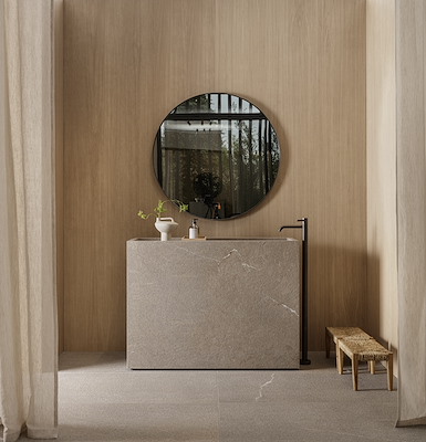 The collection celebrates the sophisticated beauty of the stone of the same name, a material that embodies all the history and natural environment of north-east Italy in its unique, delicately varied shades. This stone’s narrow veins and exquisite colours, ranging from grey to white with touches of red, create surfaces that convey a mood of harmony and distinction. In this collection, the essence of Piasentina stone is offered in 3 strongly characterised versions that fully exploit its versatile potential. FLAMED, the surface created by this treatment, expressing power and personality, VELVET, honed with a softtouch finish and a sophisticated appearance, and MILLED, decorated with thin scored lines that provide visual depth and a touch of modernity. “PIASENTINA STONE” is intended for anyone seeking subtle elegance and design that is sure to impress, transforming every interior into a place of pure expression through a unique mix of textures and structures.