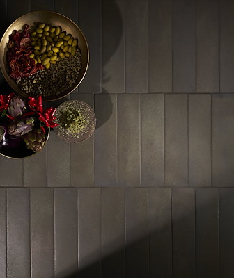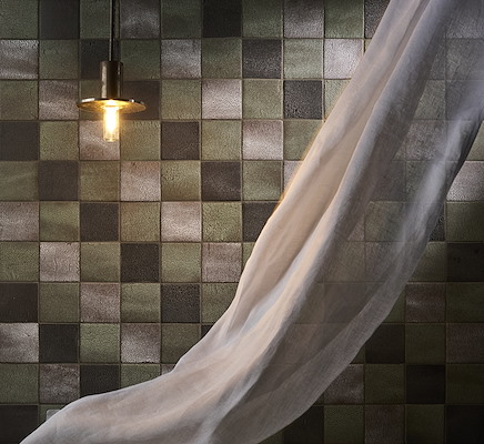 Pantelleria is a collection of artisanally crafted tiles dedicated to the spirit of the island from which it takes its name. Drawing inspiration from the color of the original material, namely that of volcanic lava, all formats and decorations are produced with a black base, made using refractory clays of black color. The dark base enhances and brings out the Mediterranean colors of deep blue, inspired by the ultramarine sea, the pink reminiscent of costellation of Venus, the green of capers, the white of the lime spread on the vaults of the dammusi, and the black of lava obsidian. A typically Pantescan palette that takes on material declinations when color meets the black of the clay, or glassy when color oxidizes into drops that remain on the surface of the product.