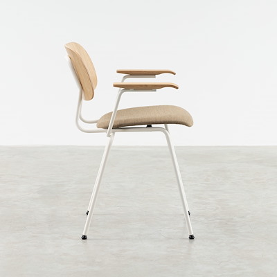 De AP43 en AP41 zijn subtiele stoelen en een toonbeeld van eenvoud en vormgeving, maar verwar dat vooral niet met saai. Want de gebogen lijnen en de combinatie van verschillende materialen maken het een bijzondere designstoel. Het buisframe is gepoedercoat met een lichte structuur, de armleggers zijn van hout en de gebogen rugleuning is verkrijgbaar in eikenhout of walnoothout. Desgewenst kan de zitting gestoffeerd worden. De AP43 is simpelweg een lekker stoeltje. Nuchter en comfortabel – precies waar wij van houden.