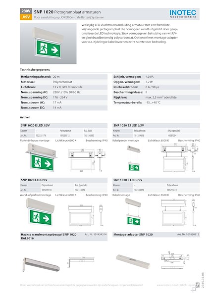 INOTEC Noodverlichting SNP 1020 vluchtrouteaanduiding armatuur