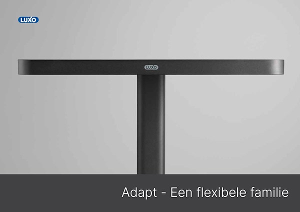 Met Luxo-kwaliteit en een strak Scandinavisch design kunt u erop vertrouwen dat een Adapt- product een aanvulling is op elk professioneel interieur. De collectie biedt een keuze uit zeven verschillende armatuurtoppen, die geplaatst zijn op een enkele mast. Adapt voldoet aan alle verlichtingsnormen voor één tot vier bureaus. In omgevingen waar bureaus in groepen bij elkaar staan, geeft Adapt het kantoor een rustige en nette uitstraling door het minimalistische design en de hoogwaardige verlichting.