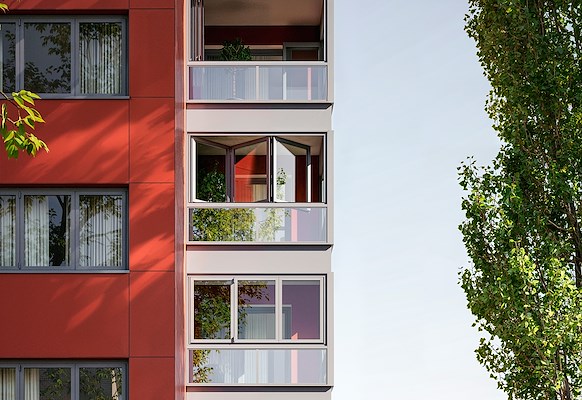 De trend van het buiten zitten, vooral in de vorm van balkons en loggia's, heeft sinds de pandemie aan kracht gewonnen. Deze ruimtes bieden in appartementsgebouwen met meerdere verdiepingen een belangrijke plek van een eigen buitenruimte. Glazen vouwwanden combineren het beste van twee werelden: wanneer ze gesloten zijn, bieden ze een comfortabele, volledig geïsoleerde leefomgeving, terwijl ze in geopende staat de binnen- en buitenruimtes naadloos met elkaar verbinden en zo de geliefde balkonbeleving creëren.
