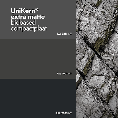 UniKern extra matte biobased hpl compactplaat RAL 7016, 7021 en 9005