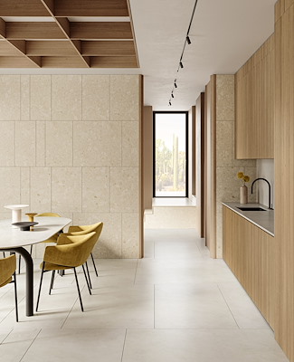 kleuren, die de unieke schoonheid van mediterrane stenen op vernieuwende wijze presenteren en perfect met elkaar gecombineerd kunnen worden in één ruimte als bekleding voor de vloer, wand, tafel- of keukenwerkblad.