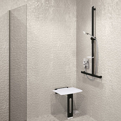 combineert esthetiek met comfort. Dankzij zijn strakke lijnen integreert dit douchezitje moeiteloos in zijn omgeving, waardoor het de medische uitstraling en het soms stigmatiserende karakter van toegankelijke badkamers doorbreekt.