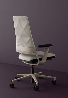 De textielafwerking Mesh Melange verlengt de rugleuning aan de onderzijde visueel en vormt een stijlvolle eenheid met de zitting.