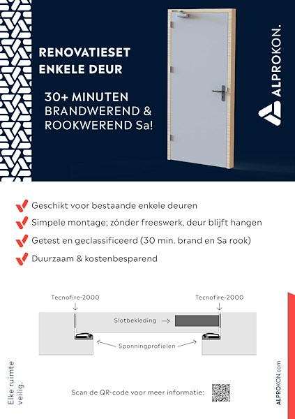 Alprokon Renovatieset t.b.v. Brandwerend 20 & 30 minuten + rookwerend Sa opwaarderen van enkele deur met 25mm sponning.