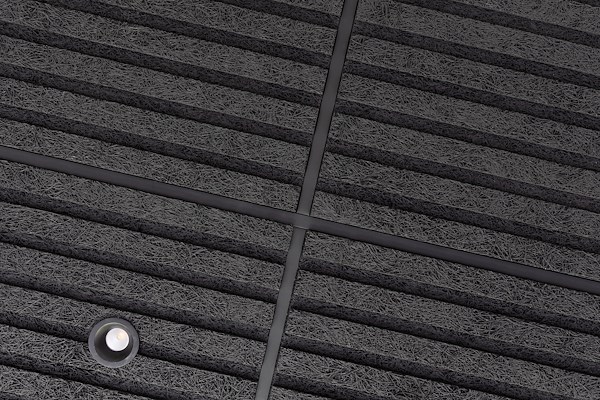 creëert een ontwerp met een patroon van lijnen die in aantal kunnen variëren (5 of 8). De oplossing bestaat uit vierkante akoestische panelen met gefreesde parallelle groeven in het oppervlak. De panelen zijn verkrijgbaar in de 5 of 8 variant, die vrij met elkaar kunnen worden gecombineerd. Panelen kunnen ook 90 graden worden gedraaid, wat resulteert in een gebroken en meer gevarieerd uiterlijk van het oppervlak.